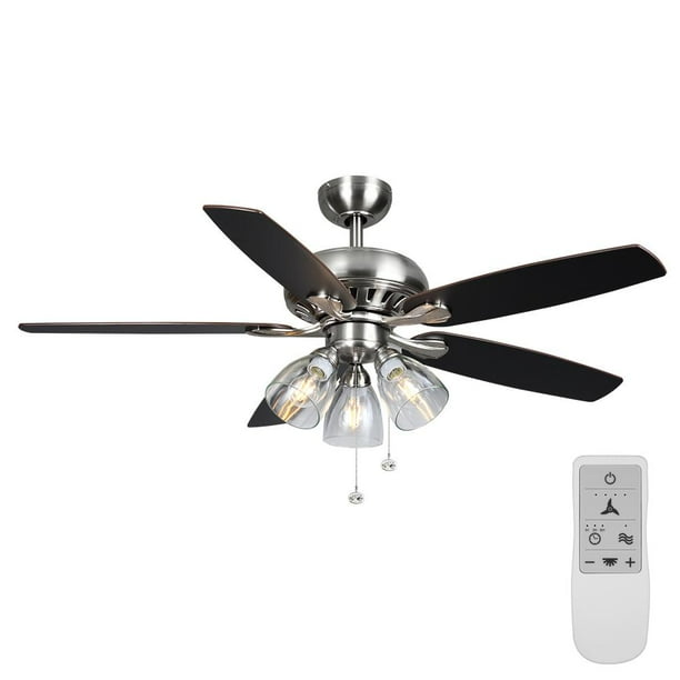Hampton Bay Piedmont 3 Light Brushed Nickel Ceiling Fan Light / Hampton Bay Stylique II 56 in. Indoor Brushed Nickel ... : Some hampton bay ceiling fans consist of light dimmers with reversing functions that make the fan go forward and backward.. Hampton bay bercello estates 52 in. Each light fixture will state a 'cap' or 'base' which will resemble one of the below (among other types): Purchased a condo with a hampton bay alturas ceiling fan with remote control. You can also install it with or without a light kit plug. This is a brand new chq7081t with functions for up light, down light and reverse.
